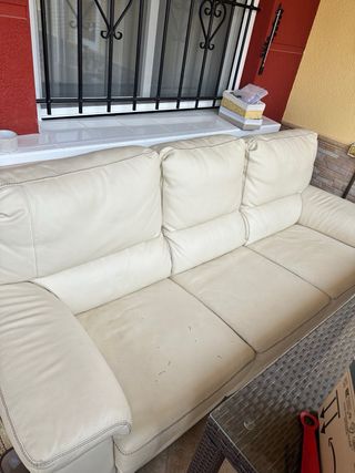Sofá de cuero beige