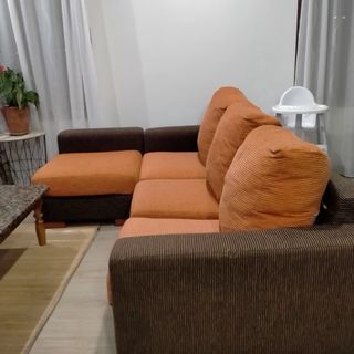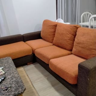 Sofá modular marrón y naranja