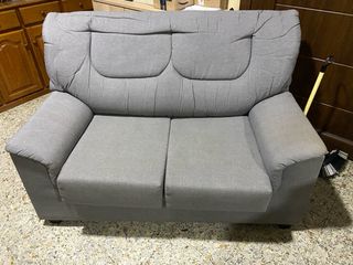 Sofá de dos plazas con un diseño moderno y cómodo. - Tapicería de tela. - Color gris. - Ideal para salones o salas de estar. Apenas sin uso
