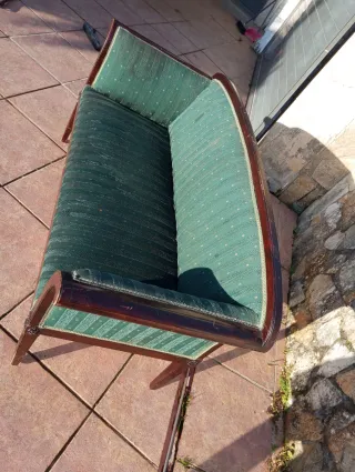 Sofá dos plazas. Tiene buena estructura pero necesita reparación y cambio de la tapicería. No se envía.