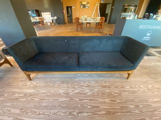 Sofá de diseño de cuatro plazas con un estilo moderno y elegante. Su estructura de madera y tapizado en tela le confieren una gran durabilidad y confort. - Diseño moderno de cuatro plazas. - Tapizado en tela. - Estructura de madera. - Dos disponibles en negro y otro en gris. - precio por unidad. - Medidas 2,23 m x 63 cm x 82 cm Mas informacion Mv: 640 887028 Interesados consultar Visita sin compromiso previa cita Precio algo negociable por los dos. Solo Recoger no se envia Mesas Sillas Butacas