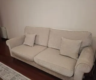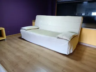 Sofá cama ASARUM de Ikea en color beige. En muy buen estado, con solo 3 años de uso y muy bien cuidado. Se abre fácilmente y queda una cama amplia y cómoda, ideal para invitados o para un despacho/habitación auxiliar. Cojines incluídos en el precio. Posibilidad de incluir colchón/topper adicional según interés (+50€). Medidas sofá abierto (cama): 194x135 Está limpio y sin manchas, sin golpes ni marcas, procedente de vivienda sin humo. Lo vendo por mudanza. 📍 Recogida en Vigo (zona Arenal/Rosalía). Mueble robusto, se necesitan al menos 2 personas para la recogida. Se puede ver sin compromiso. Precio algo negociable.