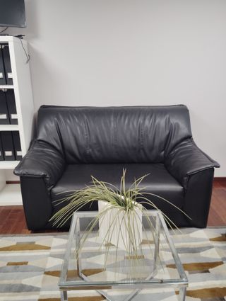 Conjunto de sofás de polipiel en color negro. - El precio es por los dos. - Diseño moderno y elegante. - Asientos cómodos y amplios. - Estructura robusta y duradera. - En perfecto estado