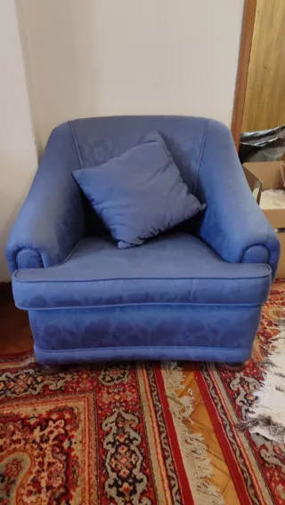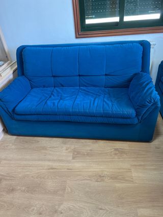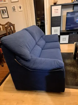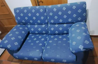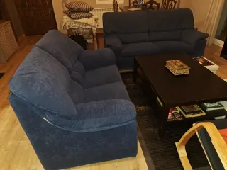 Conjunto de dos sofás, uno de tres plazas y otro de dos plazas. Están en Ourense - Tapicería de tela. - Color azul.