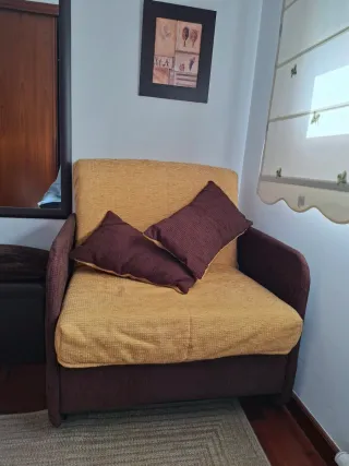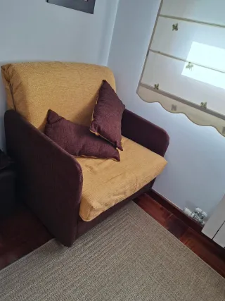 Sofá cama individual marrón y amarillo