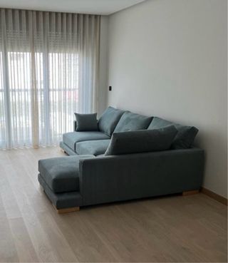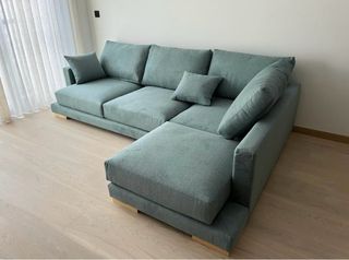 Vendo por mudanza sofá modelo LUXOR de Banak, comprado en 2023 (precio original 1.249 €). - 3 plazas con chaise longue derecho (vista de frente). - Medidas: 270 cm ancho x 191 cm fondo (chaise longue) x 88 cm alto. - Tapizado Lola Océano Bk (verde azulado muy bonito y relajante). - Patas de madera natural. Está en estado impecable, muy cuidado, sin manchas ni hundimientos. Vivienda libre de humo. Sofá amplio, cómodo y muy elegante. Perfecto para salón grande. Incluye los cojines decorativos que aparecen en las fotos. Precio: 720 € (negociable). Se puede ver sin compromiso. Recogida y transporte a cargo del comprador.