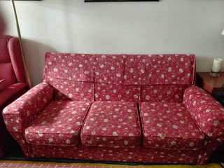 Cómodo sofá de tres plazas. Usado pero en buen estado. Mide 190x80x80cm
