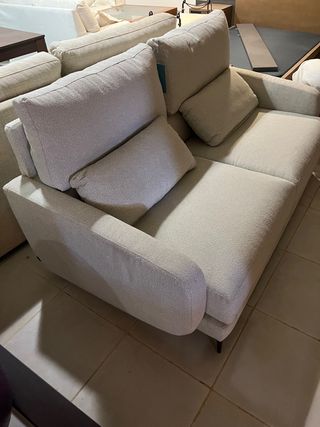 Sofá de tela en color beige, a estrenar y muy cómodo. Su diseño moderno se adapta a cualquier estancia. - Tapicería suave al tacto. - Cojines mullidos para mayor confort.