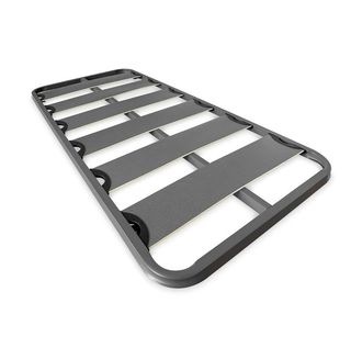 Somier individual de 90x190 cm. Estructura robusta y diseño funcional. - Base de láminas de madera. - Marco exterior de metal resistente. - Patas plegables para fácil almacenamiento.