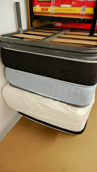 Se vende somier de 90cm junto con un colchón 35€ , los 2 60€ Hay 2 Colchones con 20cm de ancho,el otro es de 18cm de ancho. Tamaño de somier 190. El colchón con forro blanco y el primero de arriba está vendido.