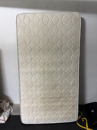 Colchón de tela en buen estado y somier (con patas incluidas). - Medidas: 110x190 cm.