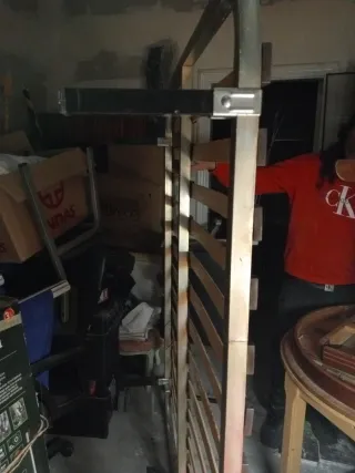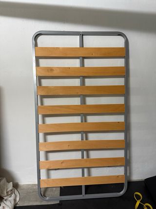 Somier de 105 cm en buen estado. Ideal para cama individual. - Estructura metálica gris. - Listones de madera. - Perfecto para colchón de 105 cm. con patas o sin patas también tengo otro de matrimonio seminuevo con patas