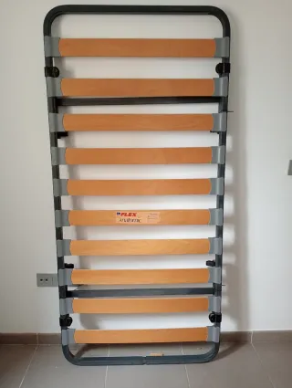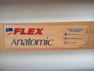 Somier de la marca Flex, modelo Anatómic. 90x190 - Estructura metálica resistente. - Patas fijas con ruedas. - Láminas de madera de haya natural flexibles para mayor confort y durabilidad.