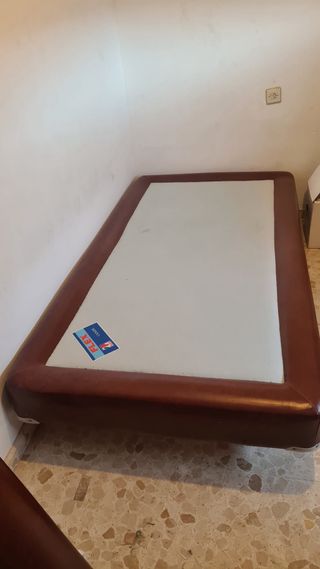 2 somieres de la marca Flex. se venden con 2 colchones y completo con todas sus patas precio negociable - Tapizado en polipiel. - Color beige y marrón.