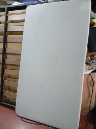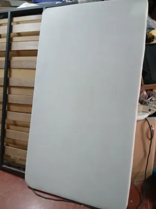 Somier 105x190 cm – Como nuevo – Excelente estado Se vende somier tapizado transpirable medidas 105 x 190 x 6 cm, en estado perfecto, como nuevo. Ha tenido uso mínimo, ya que estaba destinado a una habitación preparada para un estudiante que finalmente no ha llegado a utilizarla. La estancia se va a convertir en despacho, por lo que ya no se necesita. ✔ Tapizado resistente y transpirable ✔ Con aireadores para correcta ventilación del colchón ✔ Estructura firme y estable ✔ Patas incluidas ✔ Vivienda particular, sin mascotas ni humedad Ideal para cama individual, pisos de alquiler o habitación juvenil.