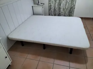 Colchón de espuma densa con somier de tablas anchas. * Usado 10 noches. * (conjunto costó 190€) Casi Nuevo - Colchón espuma densa visco con tejido algodon - Somier lamaa anchas, estable, con estructura y patas redondas a rosca