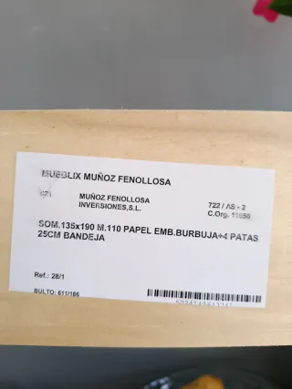 Somier de Mueblix de 135x190 cm con 4 patas. - Medidas: 135x190 cm. - Incluye 4 patas. Como nuevo apenas usado