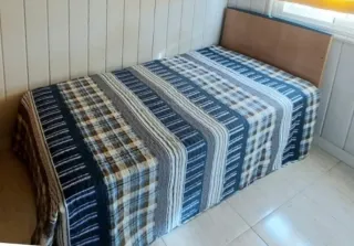Cama individual con un diseño sencillo y funcional, perfecta para cualquier habitación. - Incluye cabecero de madera. - Somier de laminas de madera, con patas. - Colchon doble cara. Invierno/verano.