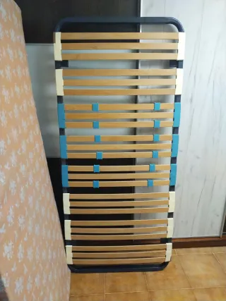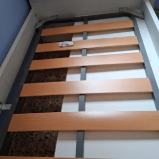 Somier de láminas de madera en perfecto estado, con patas incluidas. - Medidas: 90x190cm. - Estructura metálica resistente. - Láminas de madera.
