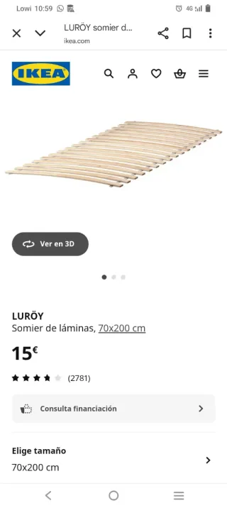 Vengo 2 unidades de somier Ikea Luroy de 70 cm x 200 cm cada unidad Están nuevos Precio de las 2 unidades: 18 €