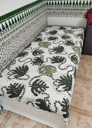Vendo pack dormitorio completo 140x200 en excelente estado (todo 2022, poco uso). Incluye: somier madera IKEA, colchón Dormity Madeira visco (muy cómodo), kit sábanas/nórdica/cojines verde y otro granate, par mesitas IKEA HEMNES edición limitada verde grisáceo (46x35x70 cm c/u, cajón+estante). Estilo nórdico fresco, coordinado y funcional. Precio pack: 480€