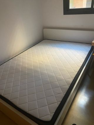 Se vende conjunto de colchón y somier de tablas. - Medidas: 140x200 cm. El somier es de tabla, el cual es más bueno y resistente. es desmontable en dos partes para que sea más fácil de transportar. viene con sus patas y con todo. está en perfecto estado. El colchón es el modelo Hamarvik de Ikea. en el centro tiene una mancha de agua, ya que se estuvo limpiando y quedó la manchita. pero esta perfecto. Tiene 2 años y poco uso.