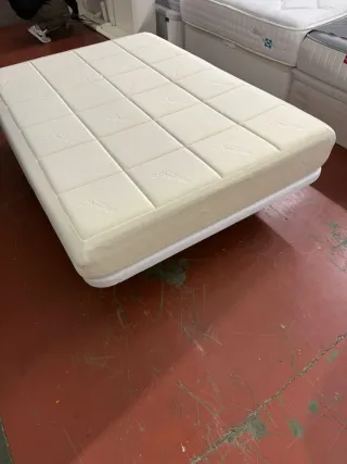 Se vende colchón viscoelástico de 135x190 cm junto con su base tapizada. - Base tapizada resistente.
