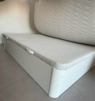 Canapé de base tapizada 180x200 blanco. Buen estado, estructura robusta de madera 100% Tapizado de tela Capacidad para gran almacenaje.