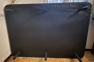 Base tapizada de 150 x 200 cm en color oscuro. Viene con 6 patas para reforzar que aguante bien el peso. La persona que esté interesada deberá encargarse del transporte.