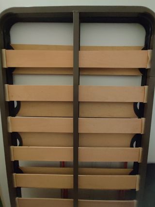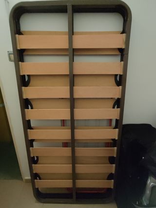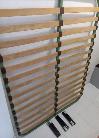 Somier de láminas con las patas incluidas. Está como nuevo porque ha tenido muy poco uso. Tamaño: 90x190 cm. Dispongo de 2 somieres. Precio de 1 somier: 30€. Precio por comprar los 2: 50€