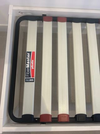 Somier de 90cm con base de láminas de madera y estructura metálica en perfecto estado (pikolin) - Láminas de madera. - Estructura metálica. - Presenta algunos desperfectos por el uso.