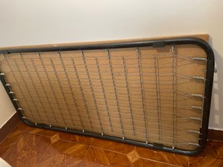 Estructura de somier en buen estado, tiene muy poco uso como se puede observar en las fotos. INCLUYE PATAS. Precio negociable. - Medidas: 105x190 cm - Color: beige y negro - Material: metal y madera