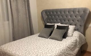 - Cabecero alto con botones. - Tapicería de terciopelo. - Incluye somier.