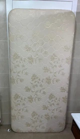 Se vende somier y colchón de medidas 190x105 cm. - Colchón con estampado floral. - Incluye cintas de sujeción.