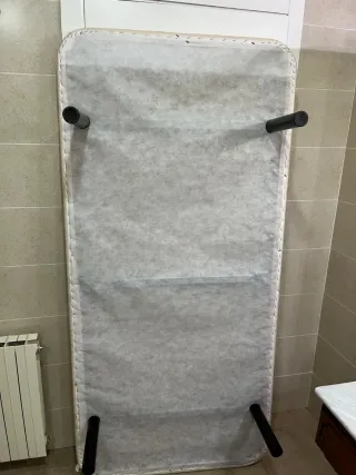 Cama completa de 90 cm (somier + colchón premium). 📏 Somier de 90 cm en perfecto estado 🛏 Usado muy pocas veces (cama de invitados) ✅ Estructura firme y láminas en perfecto estado 🚭 Hogar sin humo 📍 Recogida en mano Está prácticamente nuevo, sin ruidos ni deformaciones. Ideal para habitación juvenil, invitados o piso de alquiler.