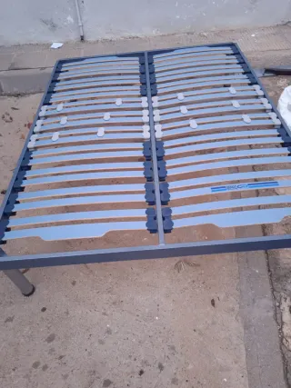 Base de cama con estructura metálica y lamas de madera. Incluye las patas del somier. Precio algo negociable.