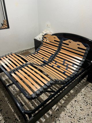 Somier articulado con base de láminas de madera y estructura metálica. - Láminas de madera flexibles. - Estructura metálica robusta. - Diseño moderno. - Cama articulada matrimonio