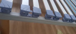 Somier de láminas en buen estado, ideal para camas individuales. - Medidas: 70x180cm. - Estructura de madera con láminas flexibles. - Soportes laterales de plástico.