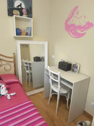 Se vende habitación completa con cama de 90cm. - Cama con somier y colchón. - Escritorio con silla. - Espejo grande. - Estantería. - Decoración de pared.