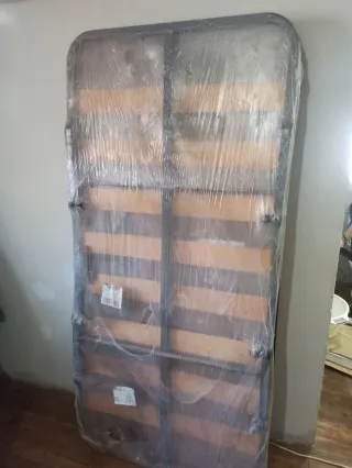 Somier de láminas con estructura metálica y base de madera. - Estructura principal de metal. - Láminas de madera. -Mide 80 con patas incluida.
