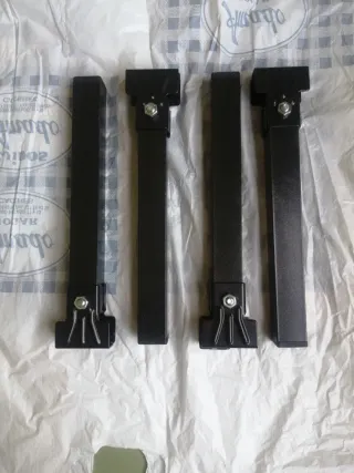 Se venden patas para simier. Piezas metálicas para soporte. 4 patas para somier dos de ellas con ruedas. Longitud 25cm. Tacos perfectos - Material: Metal. - Color: Negro y plateado.