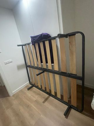 Estructura de cama individual de 90x190 cm. Está en buen estado. - Perfecta para colchón de 90x190 cm. - Listones de madera. - Estructura metálica.