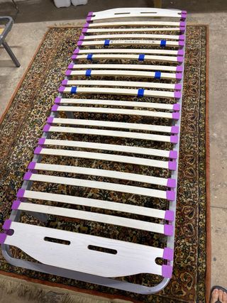 Somier de láminas en color blanco y morado. - Medidas: 200 x 80 cm. - Estructura metálica. - Láminas de madera. en perfectas condiciones