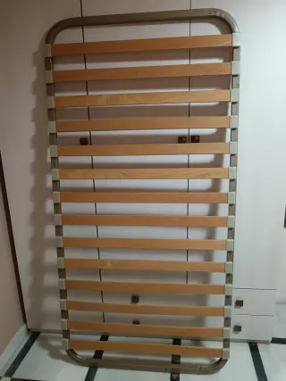 Somier de láminas prácticamente nuevo. Ideal para cama individual. - Medidas: 90 x 190 cm - Estructura metálica gris y láminas de madera marrón.