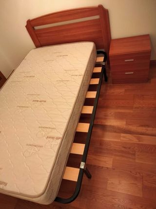 Se vende colchón ortopedico y somier de 1.05m, con patas, junto con cabecero y mesita de noche nuevo, a estrenar.
