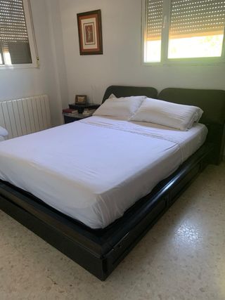 Dormitorio completo, Cama de matrimonio de 140 cm x 190 cm con somier, cabecero y mesitas de noche. Negociable