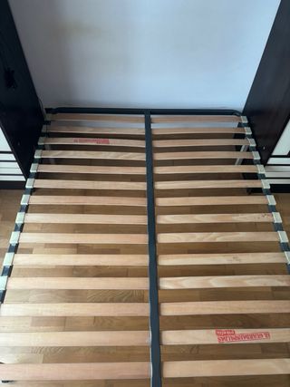 Se venden dos somieres de madera con estructura metálica. - Medidas: 190x90 cm cada uno. - Materiales: madera y metal.