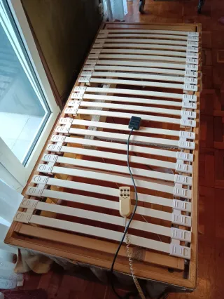 Base de cama articulada con somier de láminas. - Estructura de madera. - Láminas de plástico. Funciona correctamente Recogida en Gros