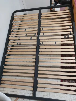 Somier de 135cm en perfecto estado, listo para usar. - Estructura metálica robusta. - Láminas de madera para un buen soporte. - Seis patas incluidas para mayor estabilidad.