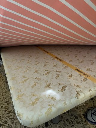 Colchón de 190x90cm y somier Se puede vender por separado Colchón: 50€ Somier: 40€ - No envíos solo recoger - Muelles - Somier del láminas con patas plegables. - Se ha usado 2 veces.